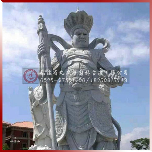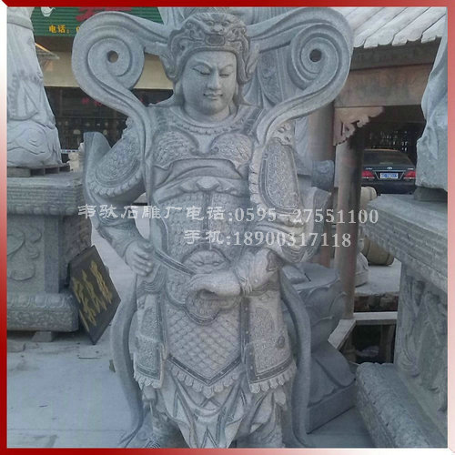 4、韋陀:韋陀菩薩是佛的護法神(佛教中另外還有一位護法天神韋天將軍)。相傳他姓韋名琨,是南方增長天王屬下八大神將之一,位居32員神將之首(四大天王每人手下有八神將)。據說,在釋迦佛入涅時,邪魔把佛的遺骨搶走,韋陀及時追趕,奮力奪回。因此佛教便把他作為驅除邪魔,保護佛法的天神。從宋代開始,中國寺廟中供奉韋陀,稱為韋陀菩薩,常站在彌勒佛像背后,面向大雄寶殿,護持佛法,護助出家人。