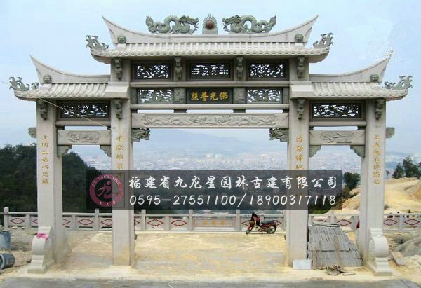 牌樓最早是由木門的演變而來的,是中國傳統建筑藝術的結晶,是裝飾效果極強的標志性建筑?,F在石雕牌坊與石雕牌樓的名稱現在都在混用,但是在最初石雕牌坊和石雕牌樓在設計結構上是有很大的不同的。首先,石雕牌樓上面有一個斗拱和屋頂,它有更大的烘托氣氛。而石雕牌坊在設計結構上就比較簡單了,但是由于它們都是我國古代用于表彰、紀念、裝飾、標識和導向的一種建筑物,而且又多建于宮苑、寺觀、陵墓、祠堂、衙署和街道路口等地 方,再加上長期以來老百姓對“坊”、“樓”的概念不清,所以到最后兩者成為一個互通的稱謂了。