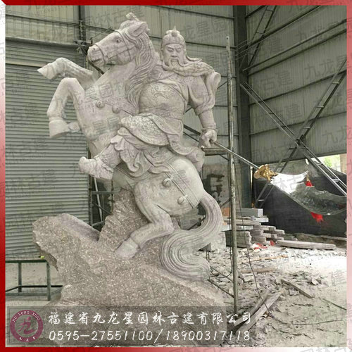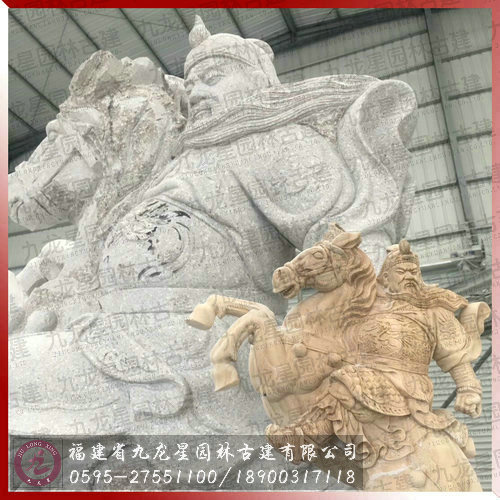 12尺高關公騎馬拿刀石像如期完成