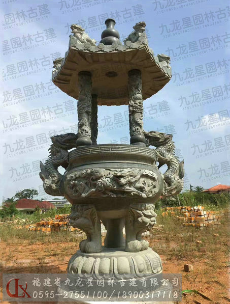 一層蓋九龍香爐-馬來(lái)西亞寺廟石雕工程實(shí)景圖