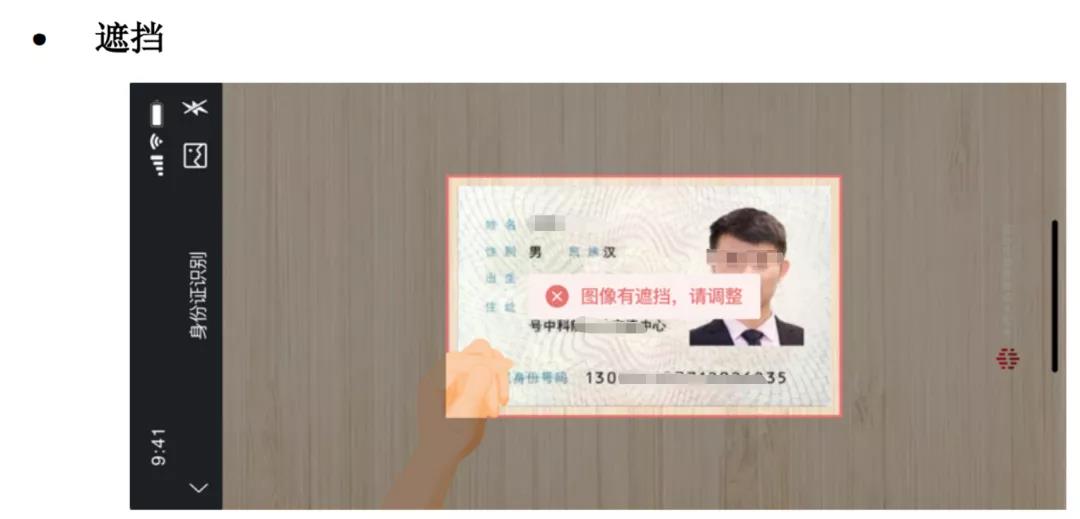 證件質(zhì)檢主要完成對拍攝的證件圖片中異常情況的檢測,如模糊、缺角、形變、切邊、光斑以及遮擋等,并做出相應(yīng)地提示,如異常類型、區(qū)域等。