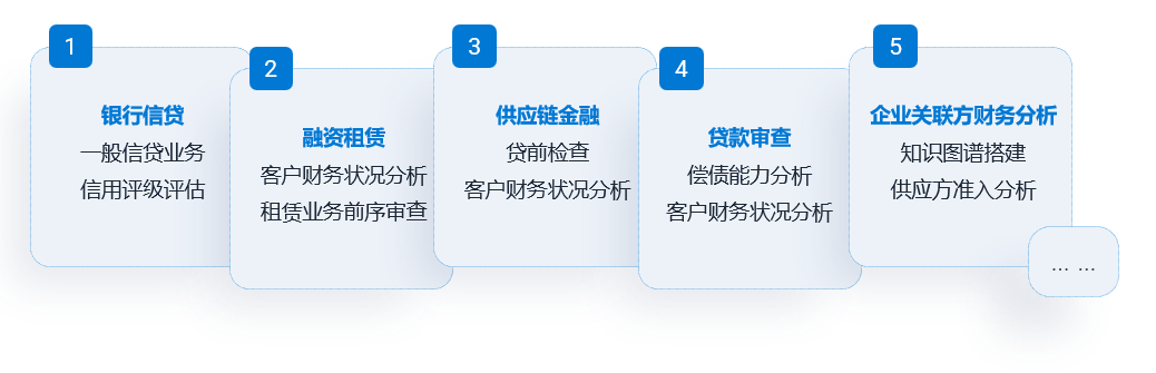 本產(chǎn)品面向的用戶包括銀行、證券等金融機構(gòu),以及投融資、審計等有財報錄入需求的機構(gòu)用戶,在銀行信貸、融資租賃、供應(yīng)鏈金融、貸款審查、財務(wù)分析等場景均有應(yīng)用。