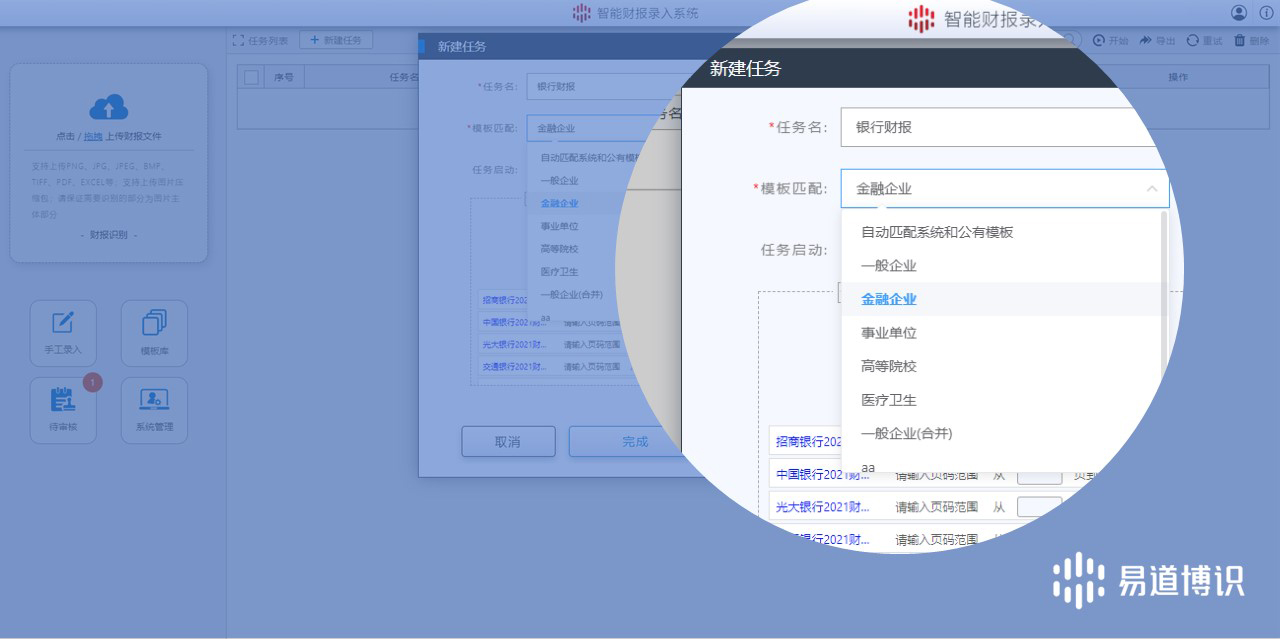 系統(tǒng)智能匹配或用戶指定使用模板,保障財(cái)報(bào)快速、準(zhǔn)確錄入。用戶可根據(jù)個(gè)性化錄入需求制作模板,發(fā)布并共享使用。系統(tǒng)模板庫(kù)里匯集多套通用模板,包括新規(guī)一般企業(yè)、舊規(guī)一般企業(yè)、金融企業(yè)、醫(yī)療衛(wèi)生企業(yè)模板等。