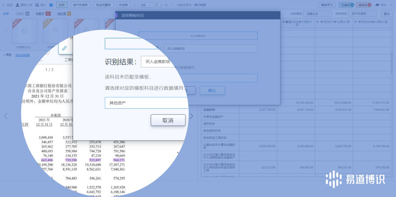 針對(duì)金融機(jī)構(gòu)、研究咨詢機(jī)構(gòu)、企業(yè)等在財(cái)報(bào)分析中面臨的共性需求及業(yè)務(wù)痛點(diǎn),易道博識(shí)憑借多年面向金融領(lǐng)域客戶開(kāi)發(fā)卡證、票據(jù)、文檔等智能識(shí)別產(chǎn)品的豐富經(jīng)驗(yàn),運(yùn)用最前沿深度學(xué)習(xí)技術(shù)、智能文字識(shí)別技術(shù)、智能圖像處理技術(shù)、智能文檔分析技術(shù)開(kāi)發(fā)一套專業(yè)的財(cái)報(bào)數(shù)據(jù)可視化錄入智能工具。