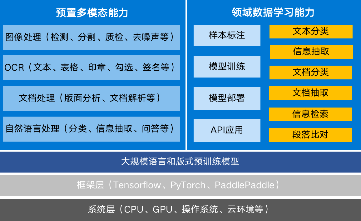 一個專業(yè)的IDP系統(tǒng)至少需要具備如下兩方面的能力,才能夠滿足富格式文檔的智能化處理需求。