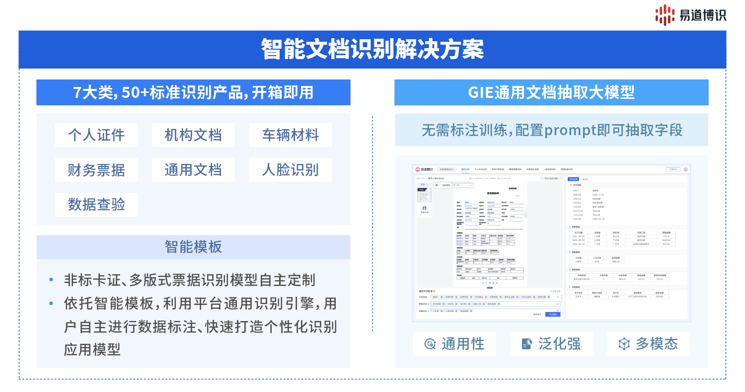 易道博識(shí)作為領(lǐng)先的智能文檔處理專家,核心產(chǎn)品之一“易識(shí)”憑借基于深度學(xué)習(xí)的OCR實(shí)現(xiàn)了多種證件(包括營(yíng)業(yè)執(zhí)照、身份證等)的精準(zhǔn)識(shí)別?!耙鬃R(shí)”通過(guò)開放的API接口,讓開發(fā)者可以輕松集成OCR功能,用于遠(yuǎn)程開戶、在線驗(yàn)證和移動(dòng)支付場(chǎng)景。此外,移動(dòng)端SDK支持用戶通過(guò)手機(jī)完成證件識(shí)別操作。私有化部署則可以保證數(shù)據(jù)不出企業(yè), 確保信息處理的私密性和合規(guī)性。