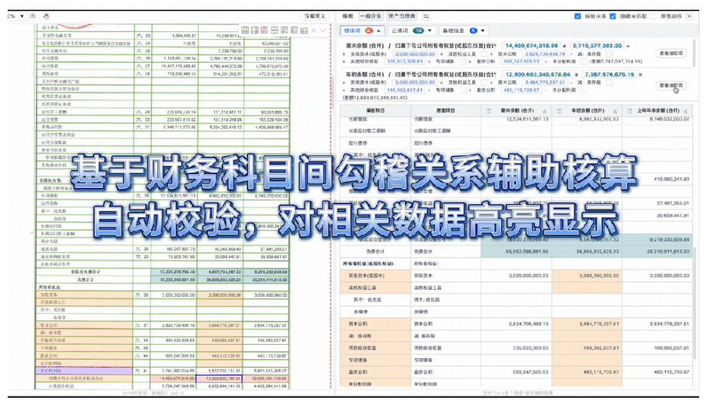 數(shù)據(jù)的準(zhǔn)確性和一致性是銀行業(yè)財務(wù)管理的核心。智能財報錄入系統(tǒng)通過引入自動配平與校驗功能,強化了數(shù)據(jù)處理的可靠性。系統(tǒng)會自動對財務(wù)科目之間的勾稽關(guān)系進行核算,快速發(fā)現(xiàn)異常數(shù)據(jù),并高亮顯示異常項目,便于財務(wù)人員及時審核和調(diào)整。自動化校驗機制不僅減少了人為操作的失誤,為后續(xù)的風(fēng)險評估和業(yè)務(wù)決策提供了更加可靠的數(shù)據(jù)支持。此外,系統(tǒng)還能根據(jù)用戶需求生成詳盡的分析報告,包括資金流向分析、異常交易排查和財務(wù)健康評估等。