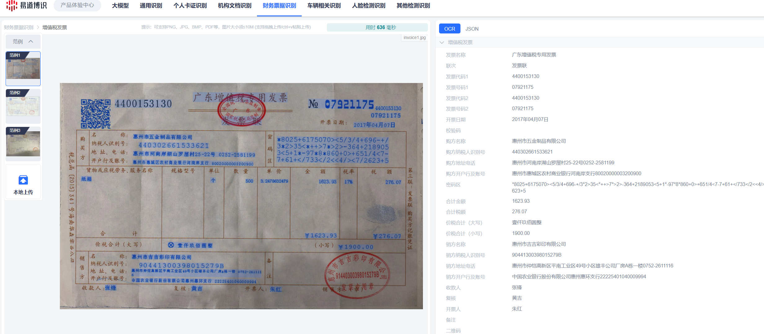 針對身份證、發(fā)票等高頻、標(biāo)準(zhǔn)化的文檔,易道博識采用深度優(yōu)化的“專用小模型”。
