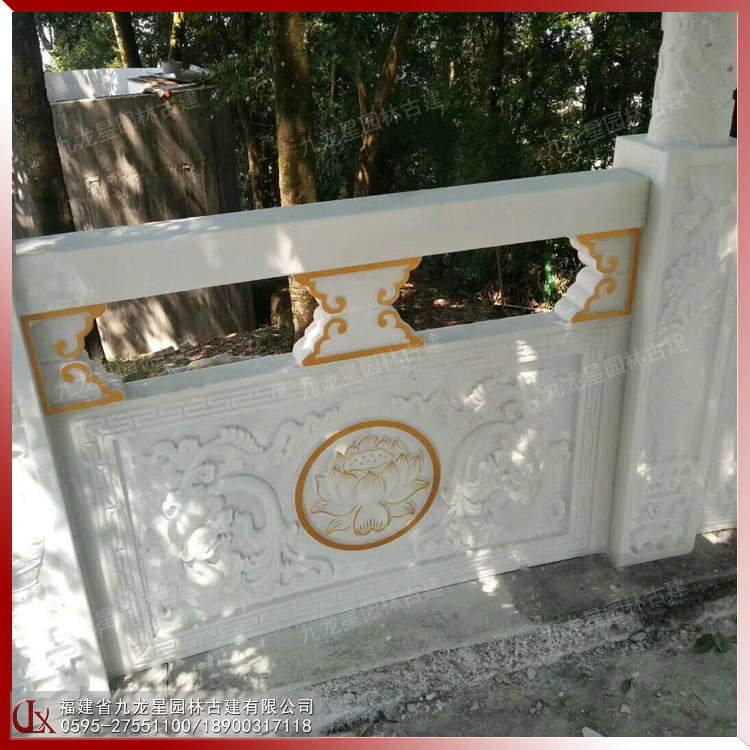 寺院欄桿石雕蓮花 漢白玉石雕浮雕欄桿圖片