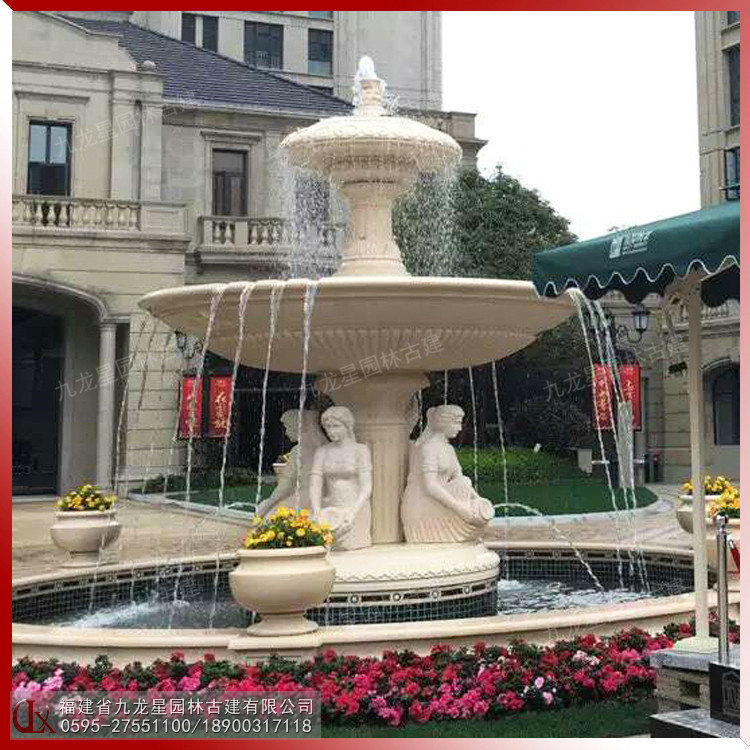 埃及米黃水缽噴泉 小區石材水缽實景圖 廠家爆款