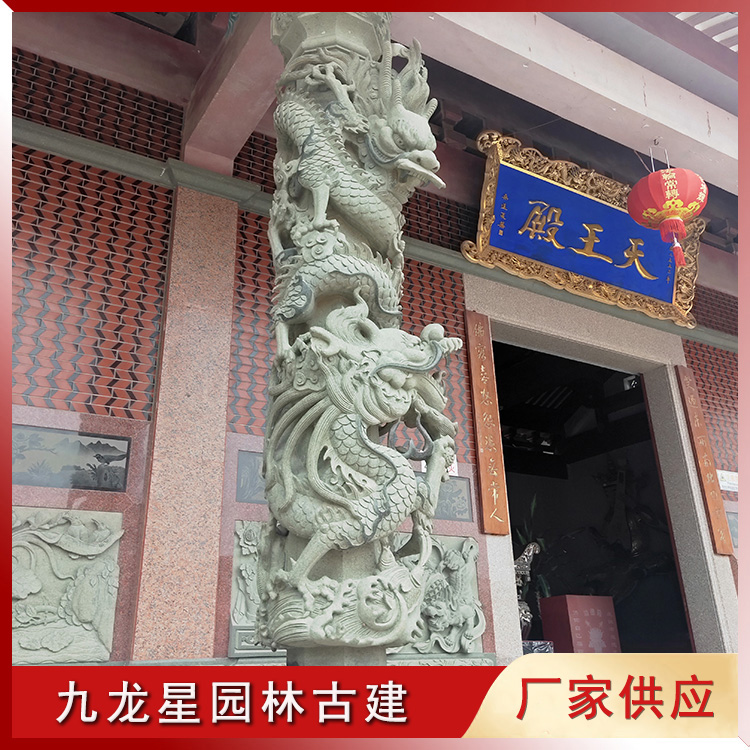 按造型分:有單龍柱、雙龍柱、滾龍柱、盤龍柱、蟠龍柱、華表柱、龍鳳柱、八仙龍柱等多種造型雕刻。