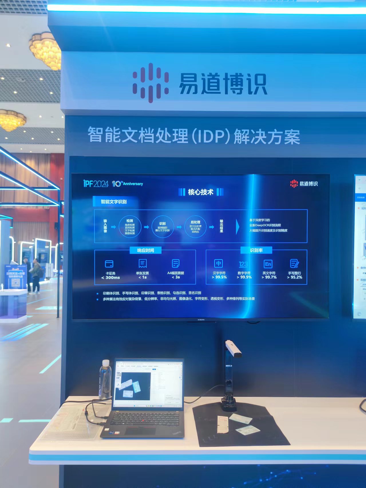 適逢IPF大會十周年,主會場設立了3大主題展館,通過3000㎡的展區(qū)生動呈現(xiàn)了人工智能帶來的顛覆性創(chuàng)新實踐。作為浪潮的重要合作伙伴,北京易道博識科技有限公司在展會上設置了展位,展示了智能文檔處理(IDP)解決方案,吸引了眾多嘉賓和與會者的關注。展示內(nèi)容包括多種文檔的OCR識別技術,支持身份證質(zhì)檢及新版外國人永久居留身份證等,可提供7大類超過50種標準證件的識別服務。在遠程開戶、貸款管理、內(nèi)部運營等銀行業(yè)務中,該解決方案發(fā)揮著至關重要的作用,滿足了多個行業(yè)對文檔識別的高標準需求。公司還提供了多元化的部署方式,包括私有化部署、軟硬一體部署和API接口調(diào)用,以滿足不同客戶的需求。