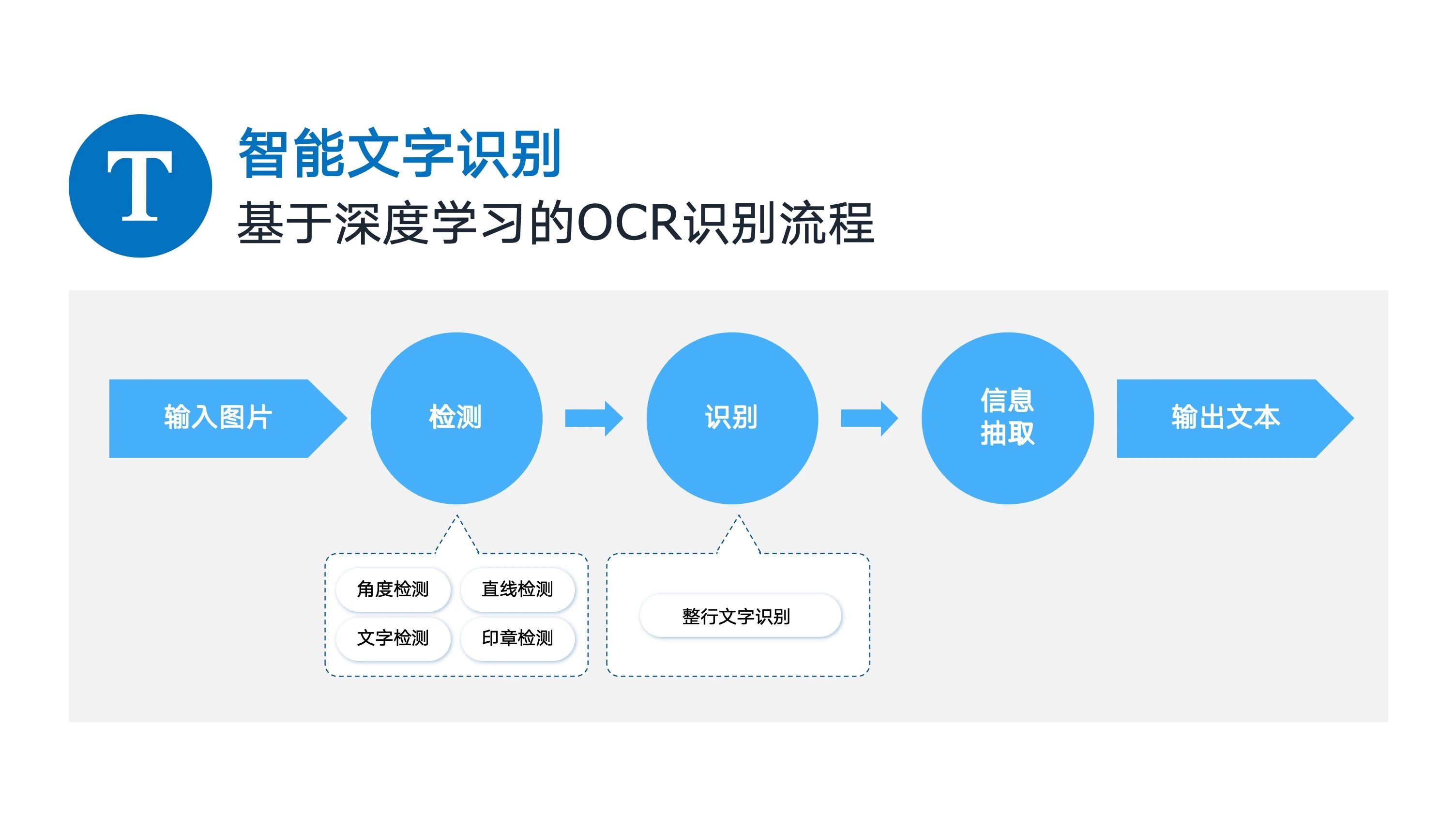 核心步驟包括文字檢測(cè)、文字識(shí)別及信息抽取,每個(gè)步驟都由一個(gè)或多個(gè)深度學(xué)習(xí)模型完成。