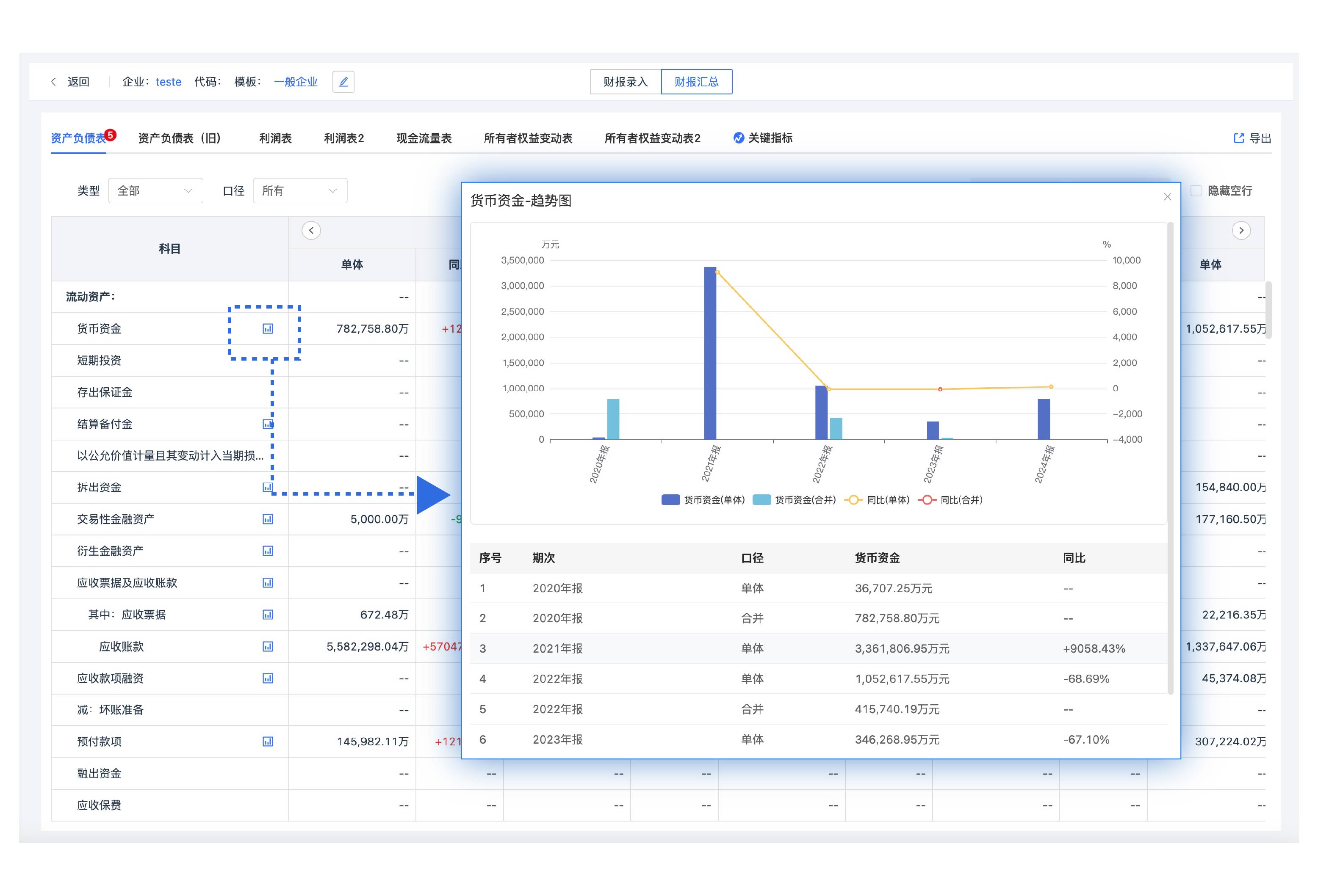 您可以進(jìn)行縱向?qū)Ρ确治觯到y(tǒng)會(huì)自動(dòng)計(jì)算同比變化,直觀洞察企業(yè)經(jīng)營(yíng)趨勢(shì)與財(cái)務(wù)健康狀況。