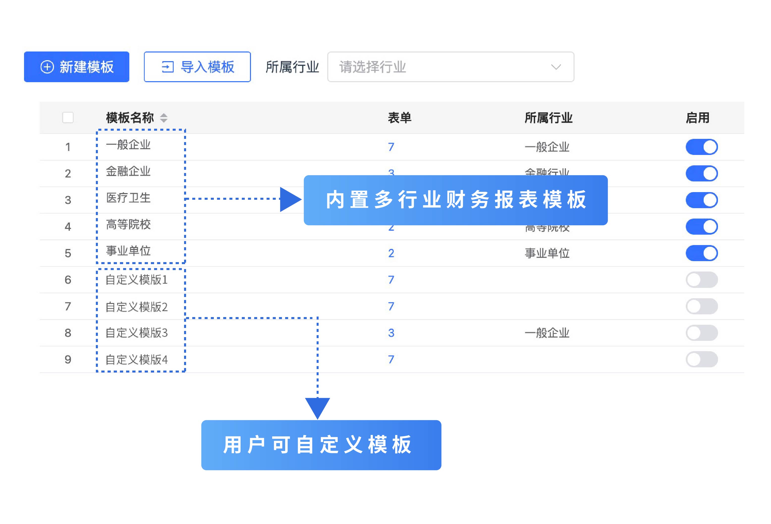內(nèi)置覆蓋金融企業(yè)、醫(yī)療衛(wèi)生、高等院校等行業(yè)通用模板,即刻上手。