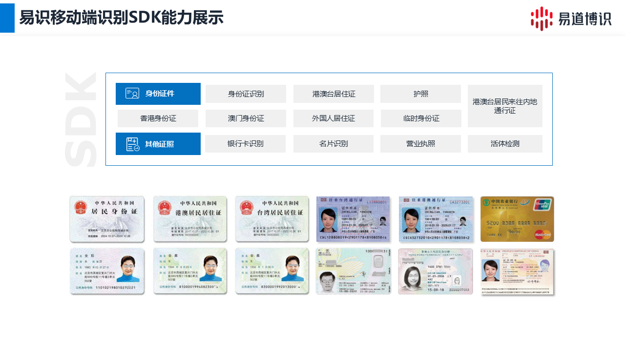 ●移動(dòng)端SDK(本地識(shí)別): 速度快,支持離線操作,用戶體驗(yàn)更好,數(shù)據(jù)隱私性最高(如易道博識(shí)的SDK),但會(huì)占用App體積。