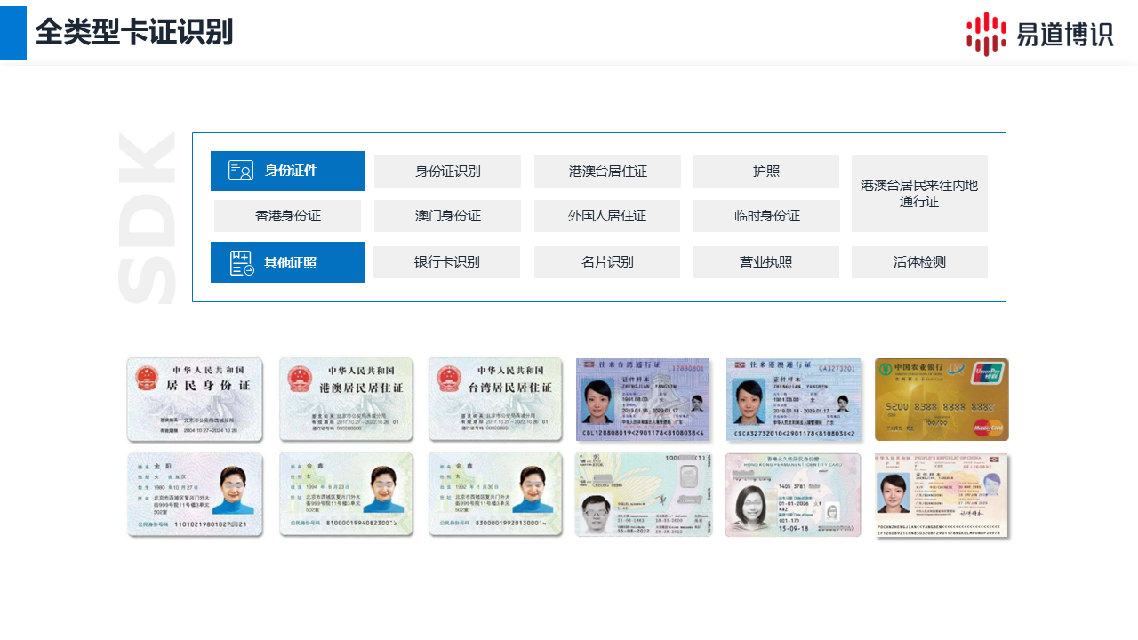易識(shí)移動(dòng)端識(shí)別SDK基于深度學(xué)習(xí)技術(shù)研發(fā),是一款在移動(dòng)端即可實(shí)現(xiàn)服務(wù)器端綜合性能的智能產(chǎn)品。支持身份證、銀行卡及各類(lèi)通用證照的毫秒級(jí)識(shí)別,識(shí)別準(zhǔn)確率超99.5%。